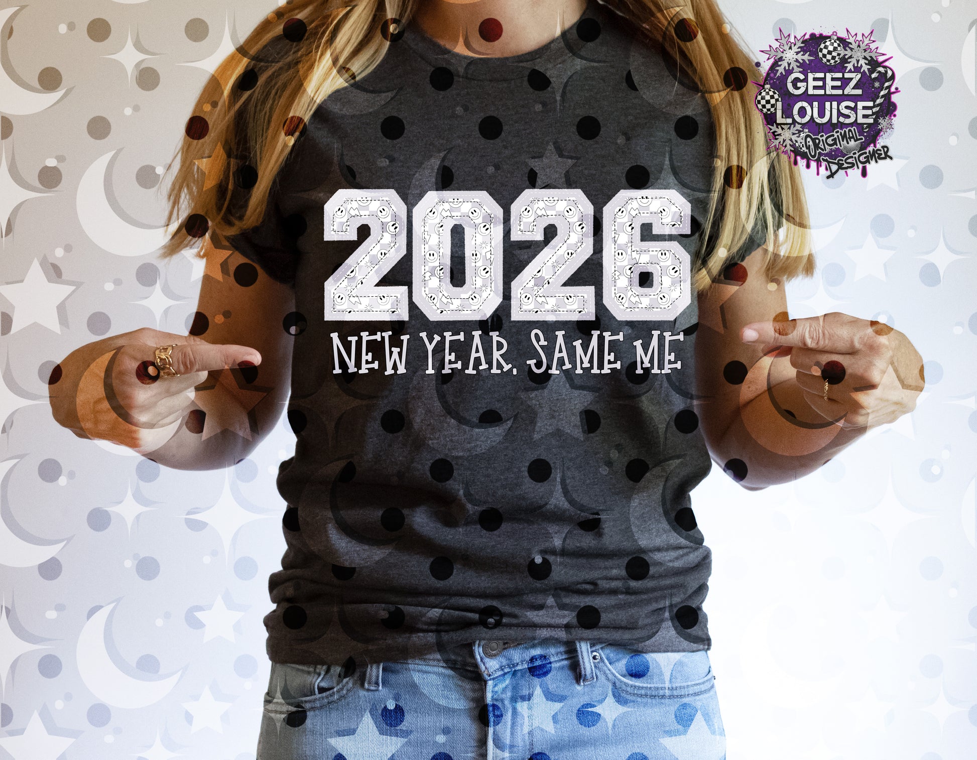 This 2026 New Year. Same Me design is perfect for those who aren’t pretending to turn into a whole new person just because the calendar flips. Ideal for New Year’s Eve shirts, party pics, and that first sassy post of the year.
