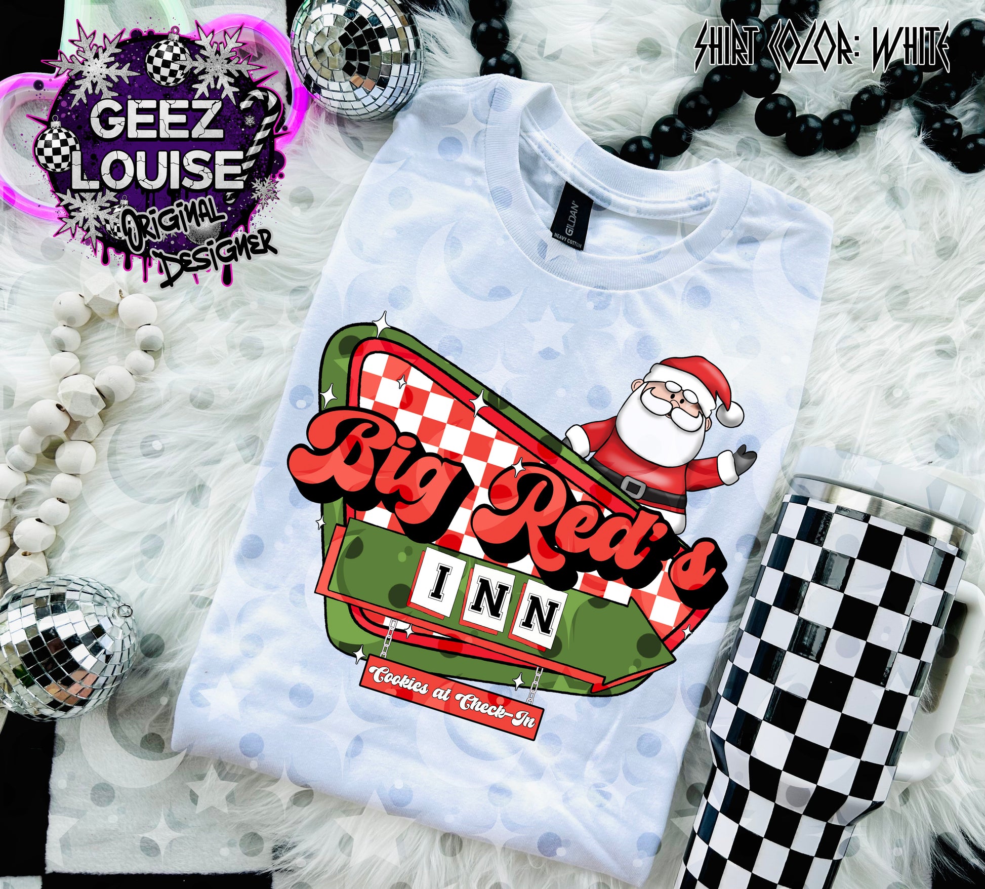 Welcome to Big Red’s Inn — where Santa checks in and the cookies come free! This retro-style Christmas motel sign design is perfect for festive tees, cozy sweatshirts, holiday market sellers, and anyone who loves a little vintage cheer.