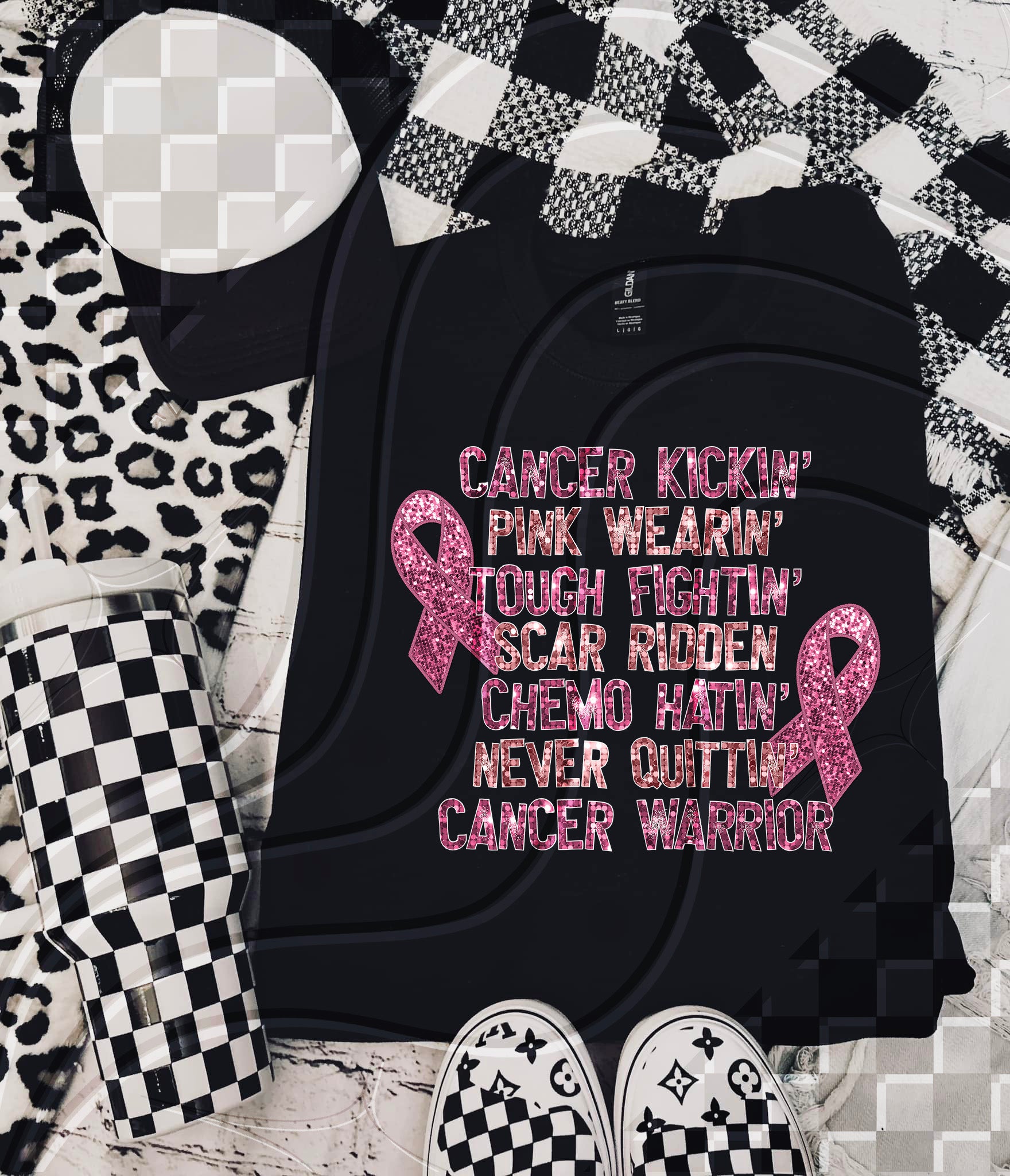 Honor the strength it takes to fight the fight with this Cancer Warrior Pink Ribbon Digital Design. This high-resolution PNG features glittery pink text with bold phrases like Cancer Kickin’, Tough Fightin’, and Never Quittin’ – all wrapped in strength and survivorship. Paired with glitter pink ribbon graphics, this design is a powerful tribute to fighters, survivors, and warriors.