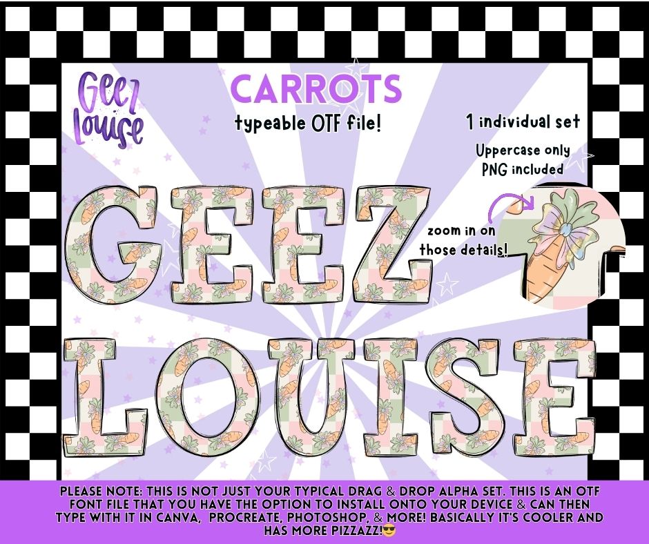 Carrots OTF Font | Uppercase Typeface + PNG | Spring Alphabet Design