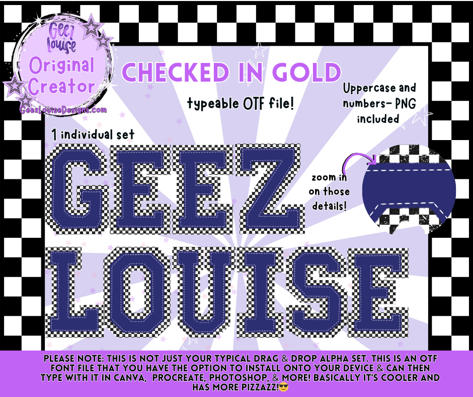 This isn’t your average drag-and-drop alpha set. Checked in Navy is a typeable OTF font file stitched with sass and soaked in cardinal red checkers. Designed for creators who want their words to scream louder than their inner monologue, this font brings stitched chaos to Canva, Procreate, Photoshop, and beyond.