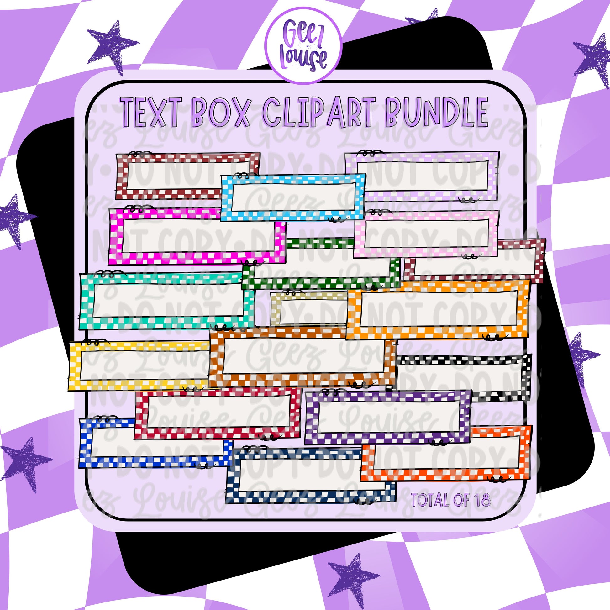 Checkerboard Text Box Clipart Bundle – 18 PNG Frames for Digital Designs