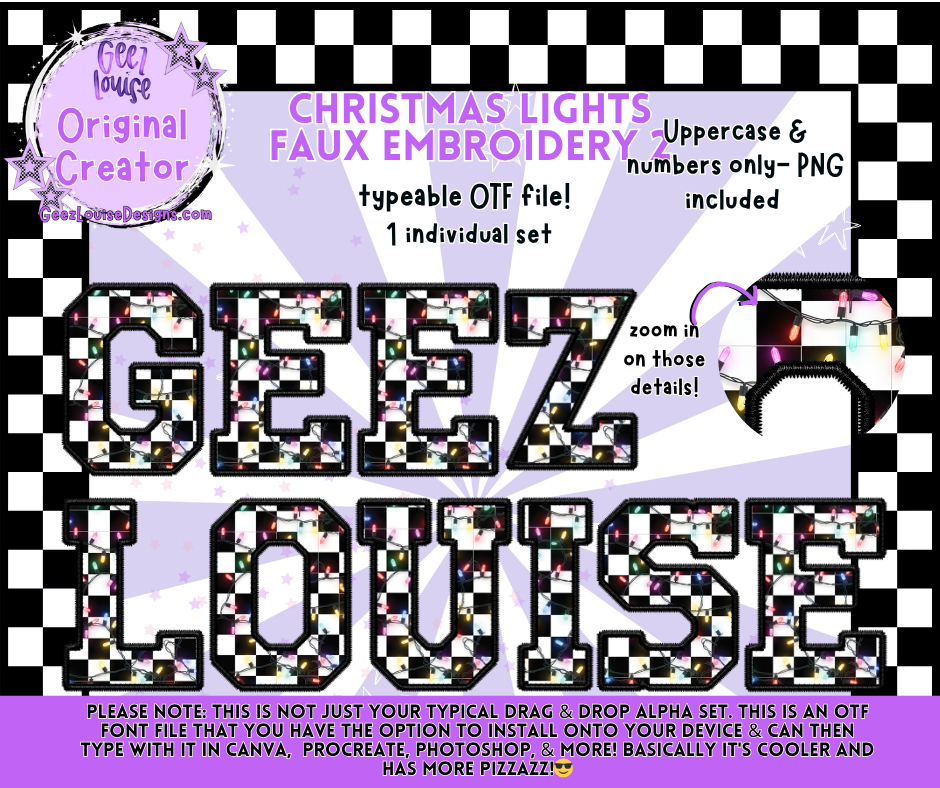 Christmas Lights Faux Embroidery Alpha | OTF Font + PNG Set
