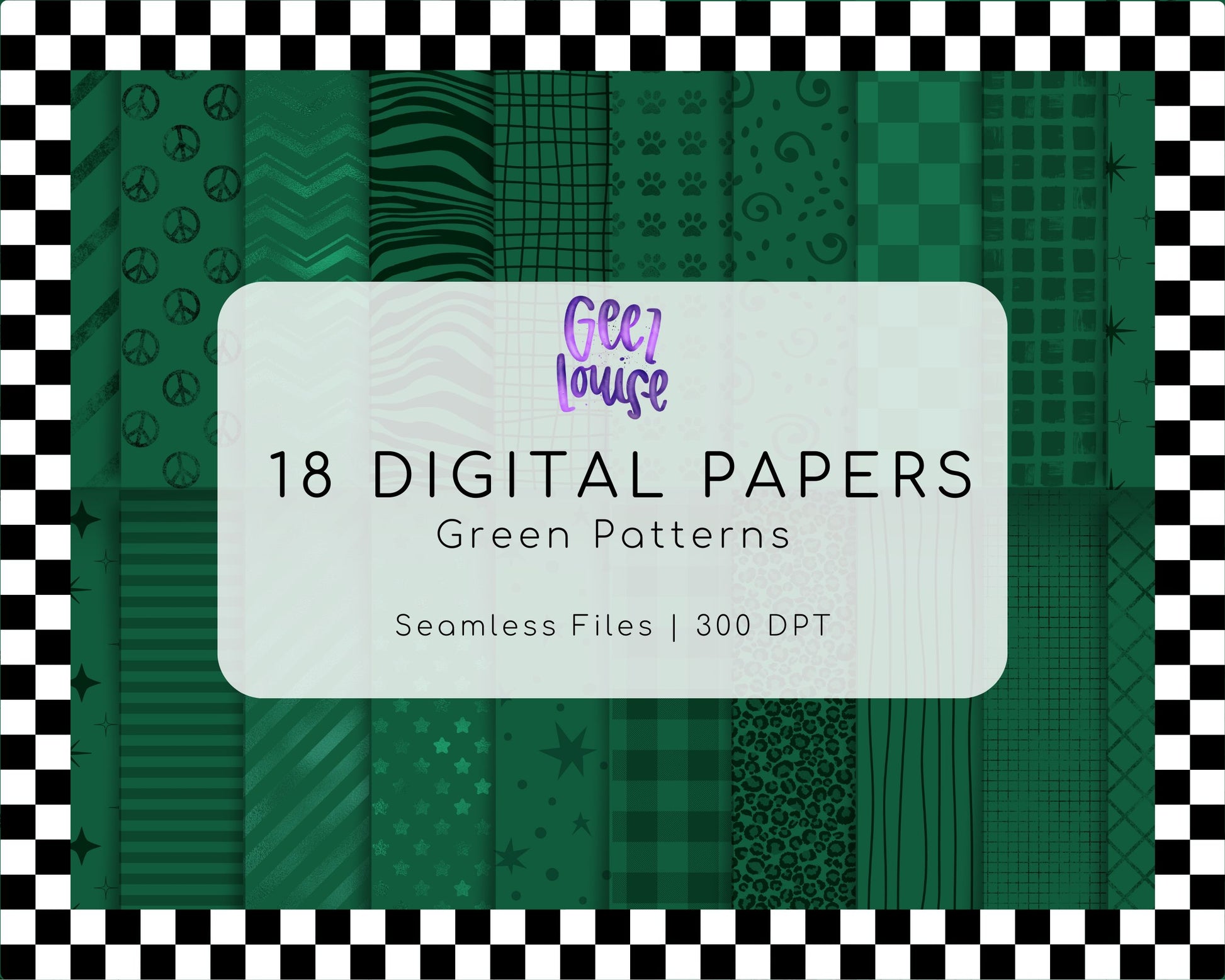 This pack includes 19 seamless green digital papers designed in bold, modern patterns perfect for year-round projects. From stars and stripes to grids, peace signs, animal print, and textured designs, this bundle gives you a full variety of clean, high-quality backgrounds for your creative work.
