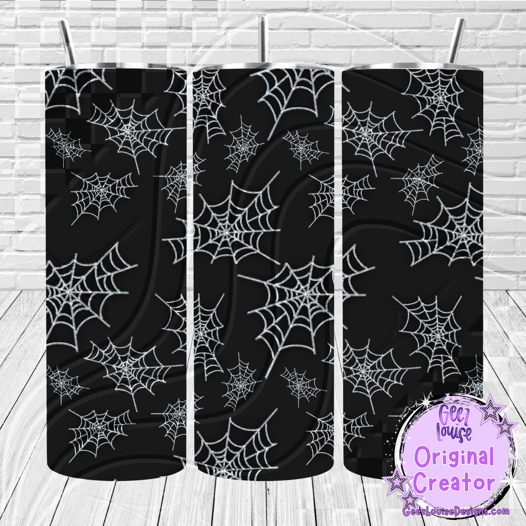 Creep it real this spooky season with this Spiderweb Tumbler Wrap! Featuring a bold black background covered in glittery white spiderwebs, this design is perfect for Halloween or year-round gothic vibes. Sized specifically for straight 20 oz skinny tumblers, this high-resolution PNG file is ready for sublimation and instant download.