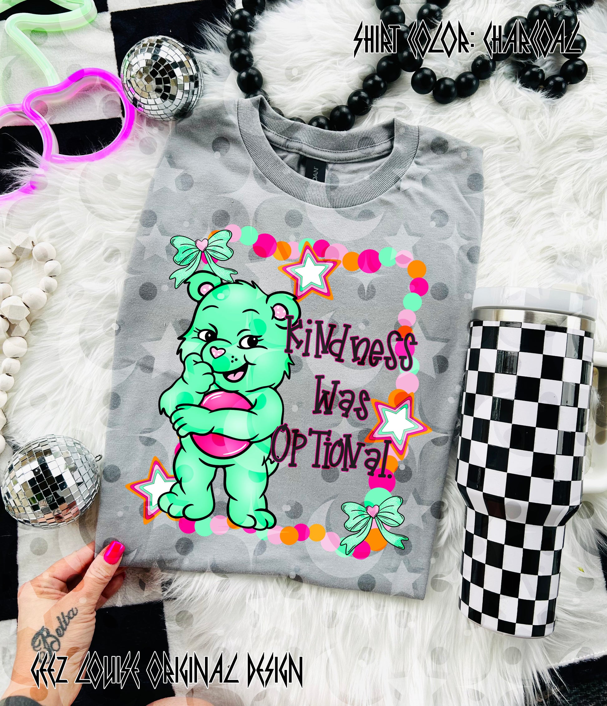 Kindness Was Optional blends adorable cartoon energy with just enough sarcasm to make people smile.