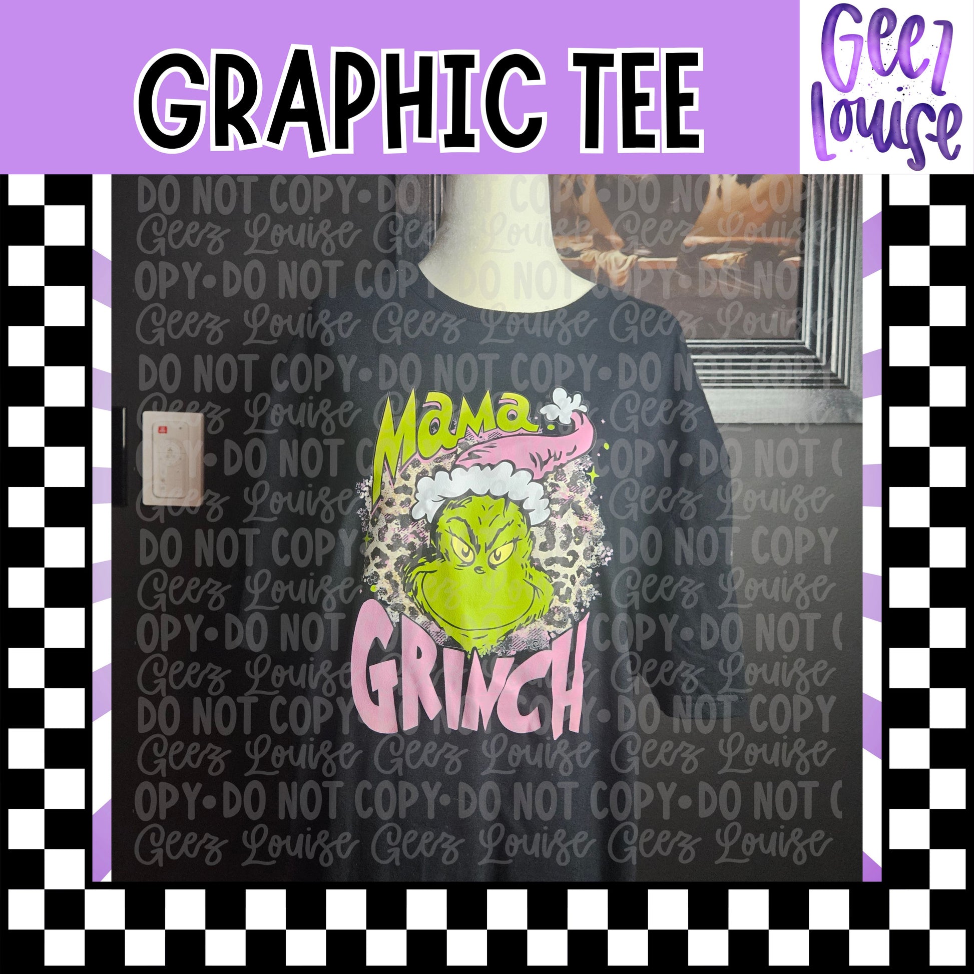 Bring the sass and the holiday spirit together with this Mama GMAN Graphic Tee 🎄💚. Featuring a bold GMAN face in bright green with a pink Santa hat and a fun leopard-print background, this shirt is perfect for all the mamas who embrace a little attitude during the holidays.