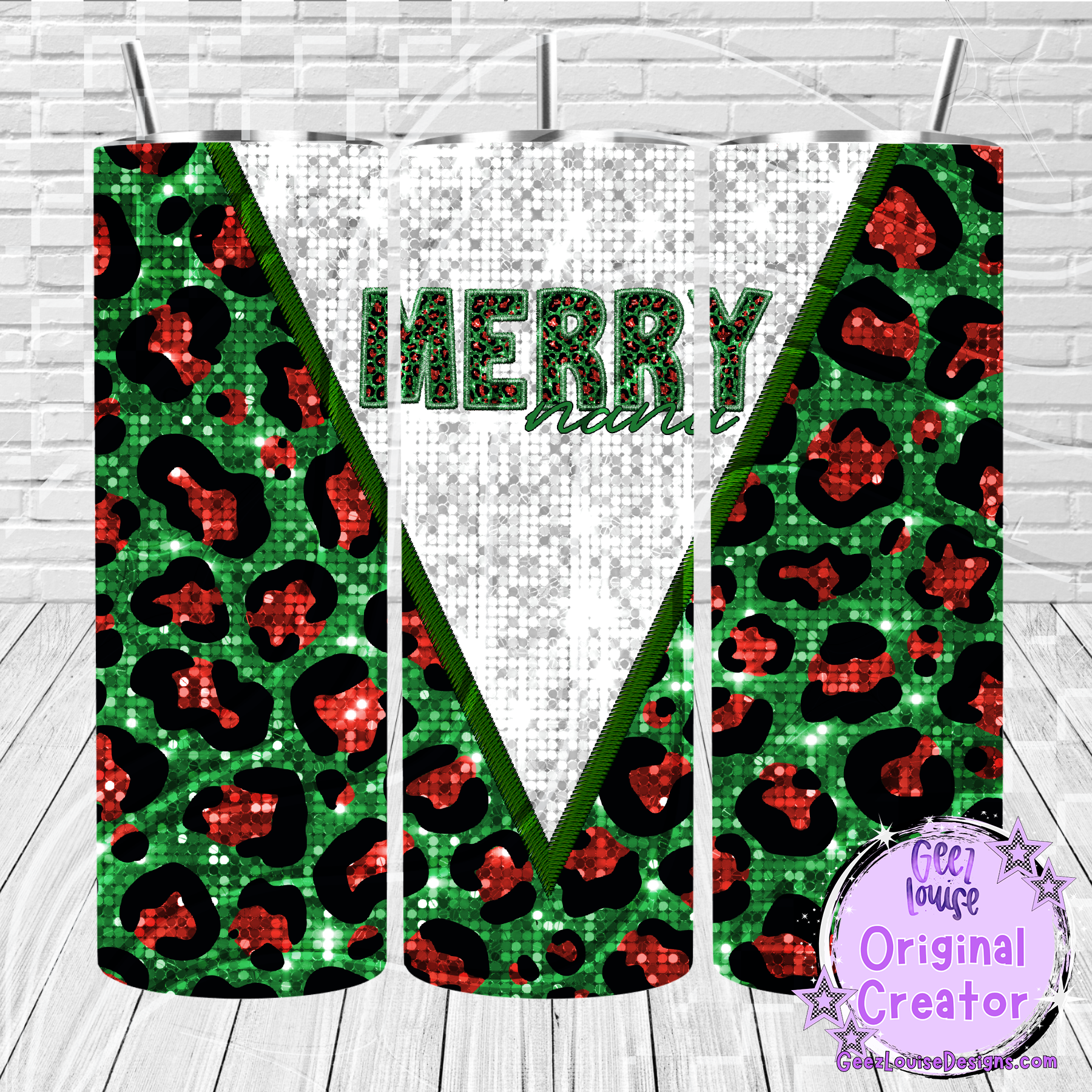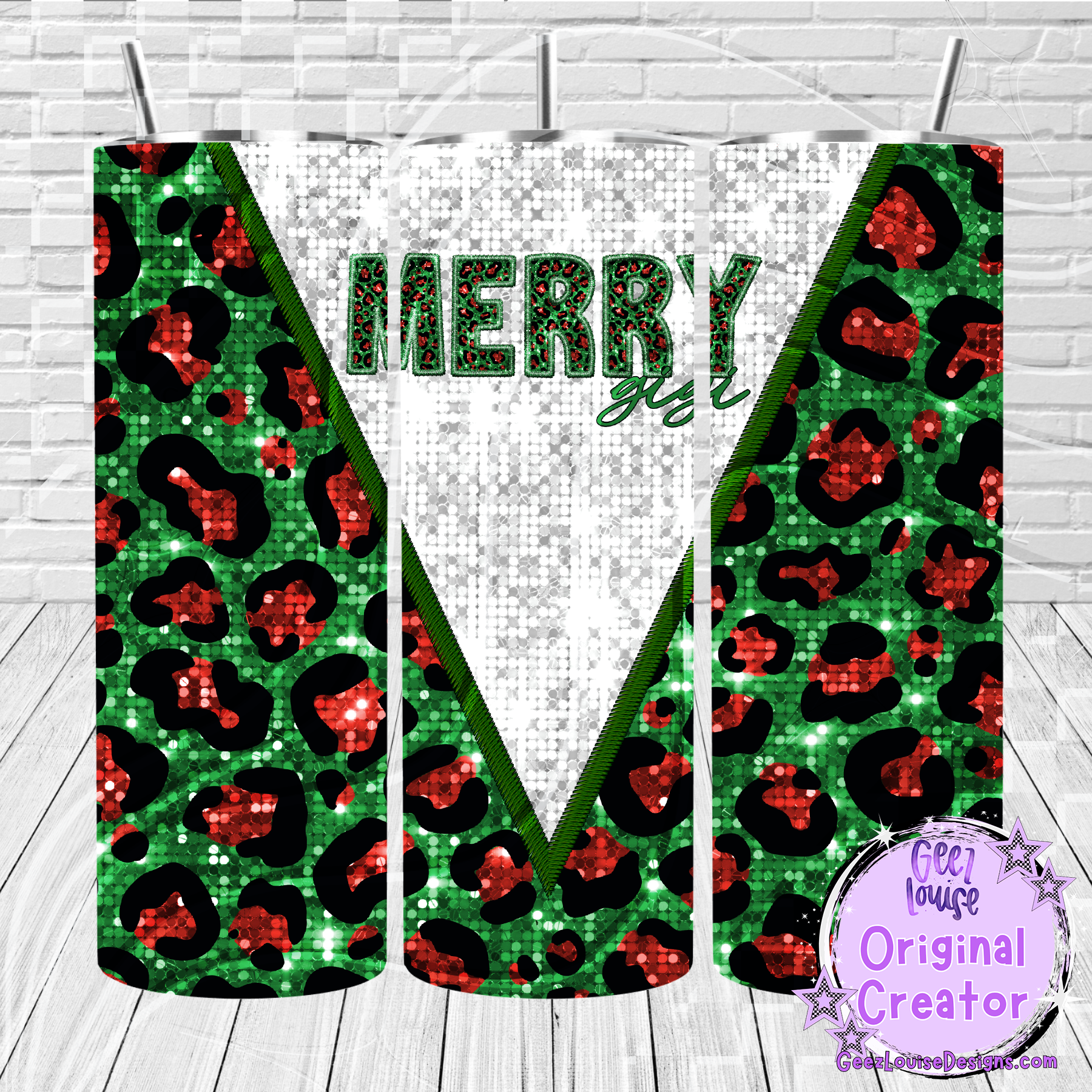 Merry leopard faux sequin tumbler wrap - Digital Download- PNG