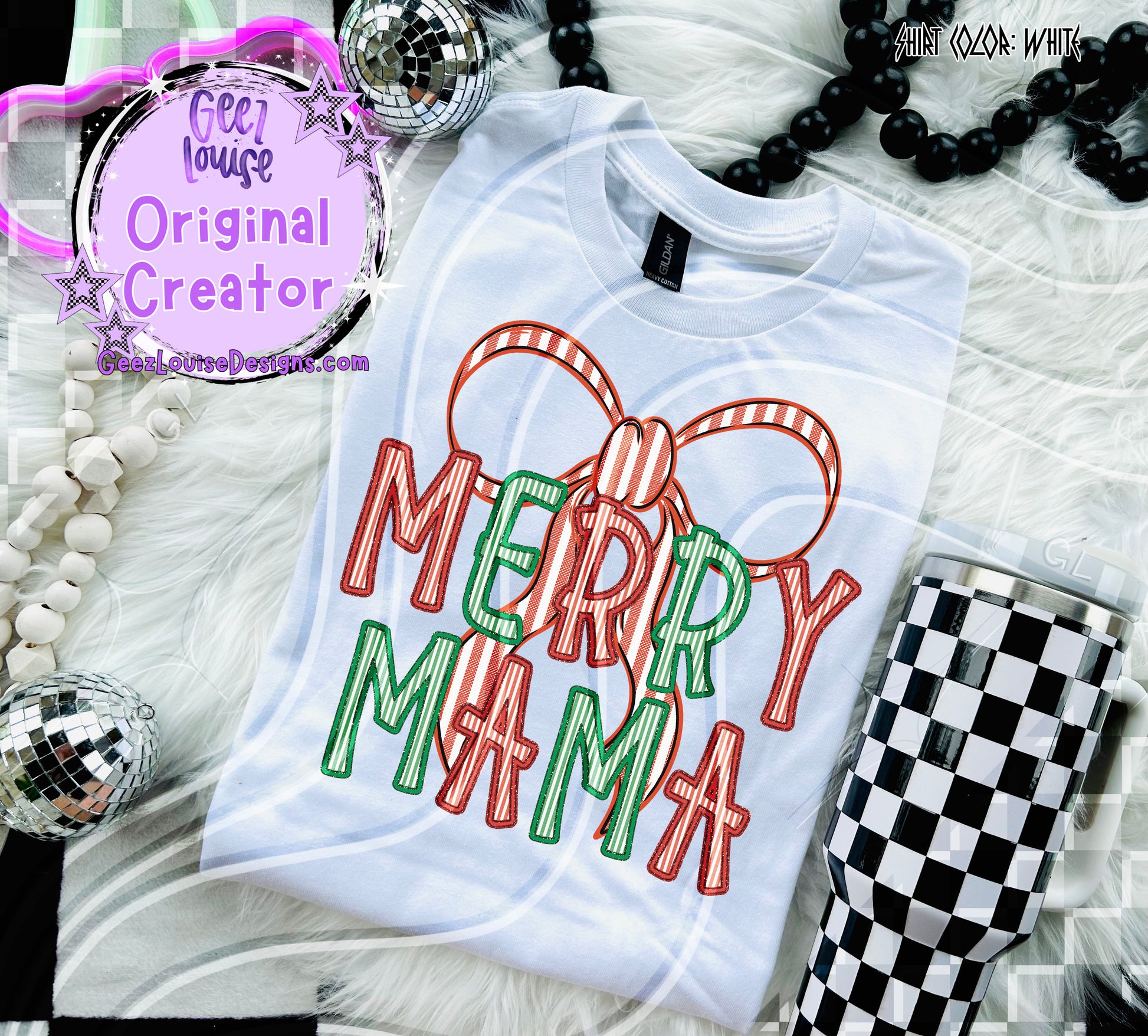 Add some holiday cheer to your creations with these festive Christmas digital designs! Featuring bold lettering in red and green with candy cane bow accents, these designs are perfect for celebrating the season with matching styles for Mama and Mini.
