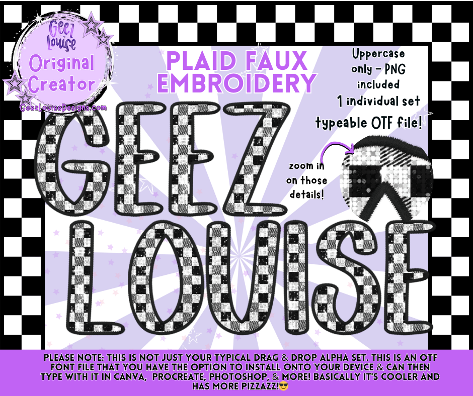 Plaid Faux Embroidery Alpha Font | OTF & PNG Letters