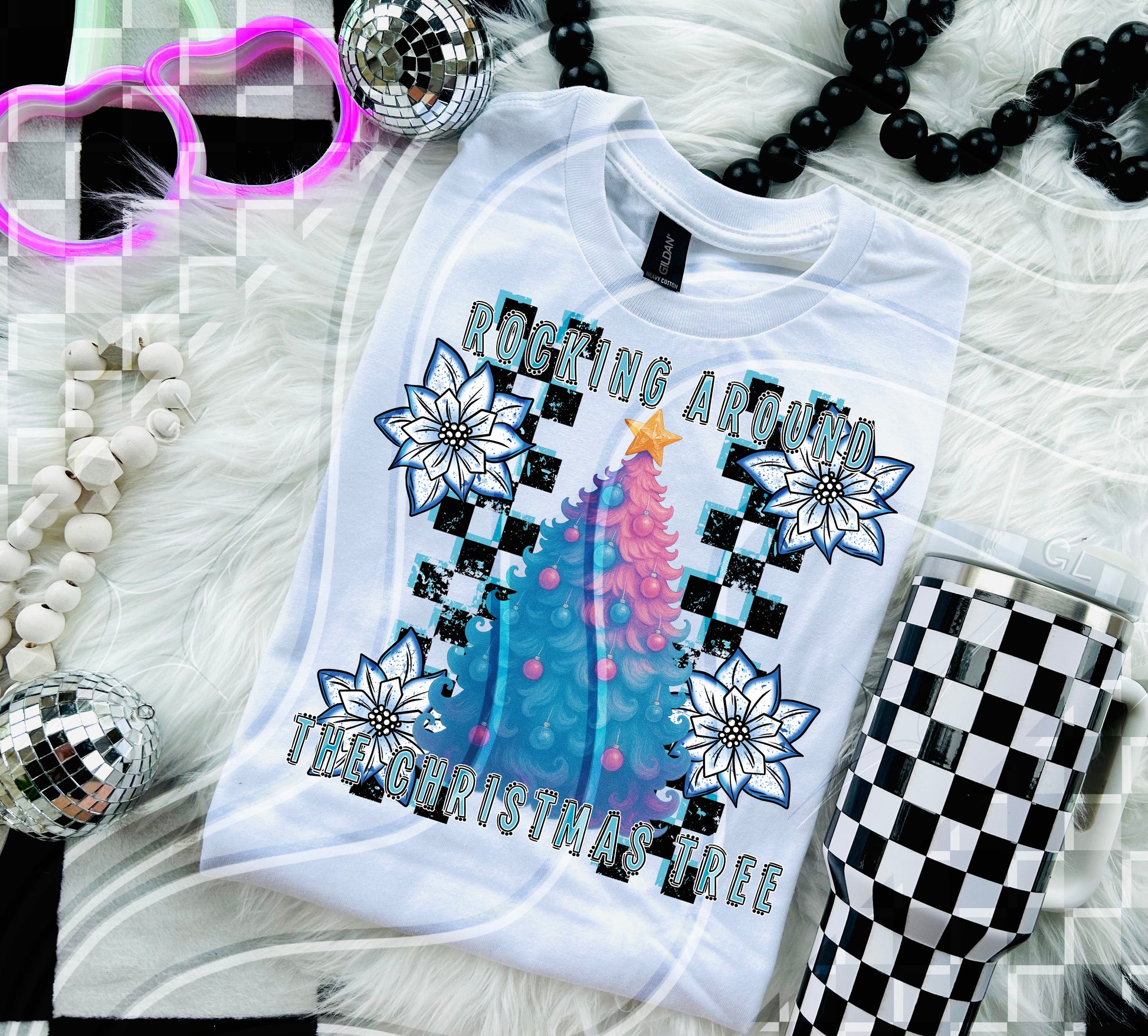 Get festive and fun with the “Rocking Around the Christmas Tree” digital design! Featuring a bright and colorful Christmas tree topped with a shining star, surrounded by poinsettias and bold checkerboard accents, this design is perfect for holiday crafting.
