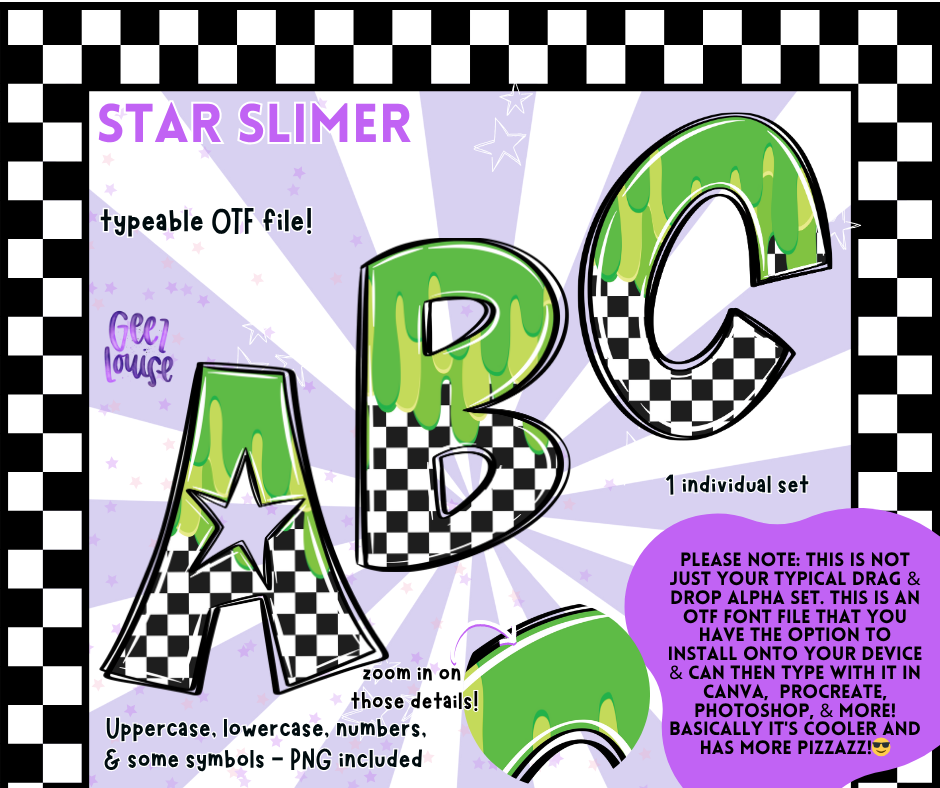 Star Slimer Alpha – Green Slime Checkered OTF Font & PNG Set