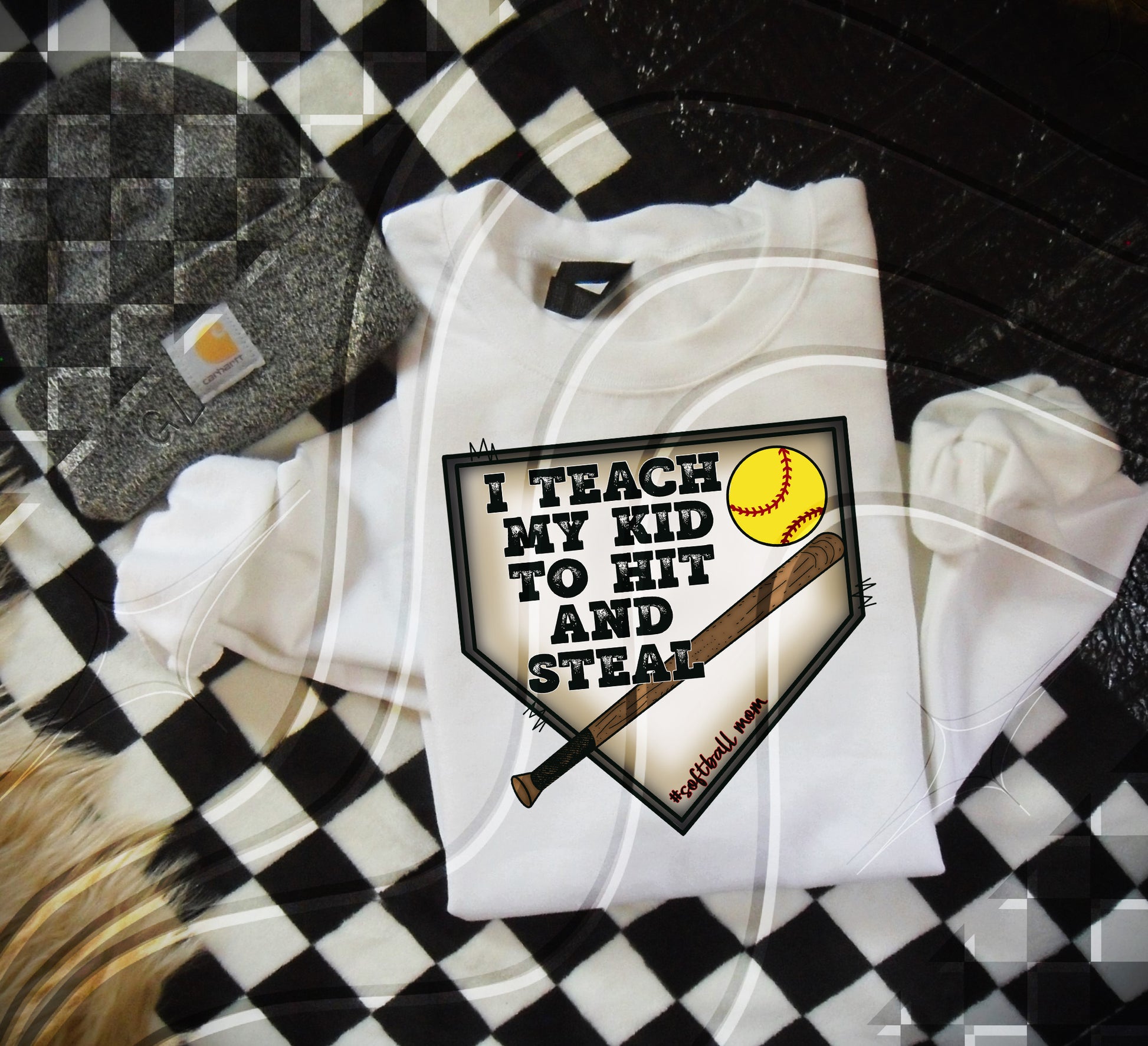 Teach my kid to hit or steal softball - Digital Download- PNG