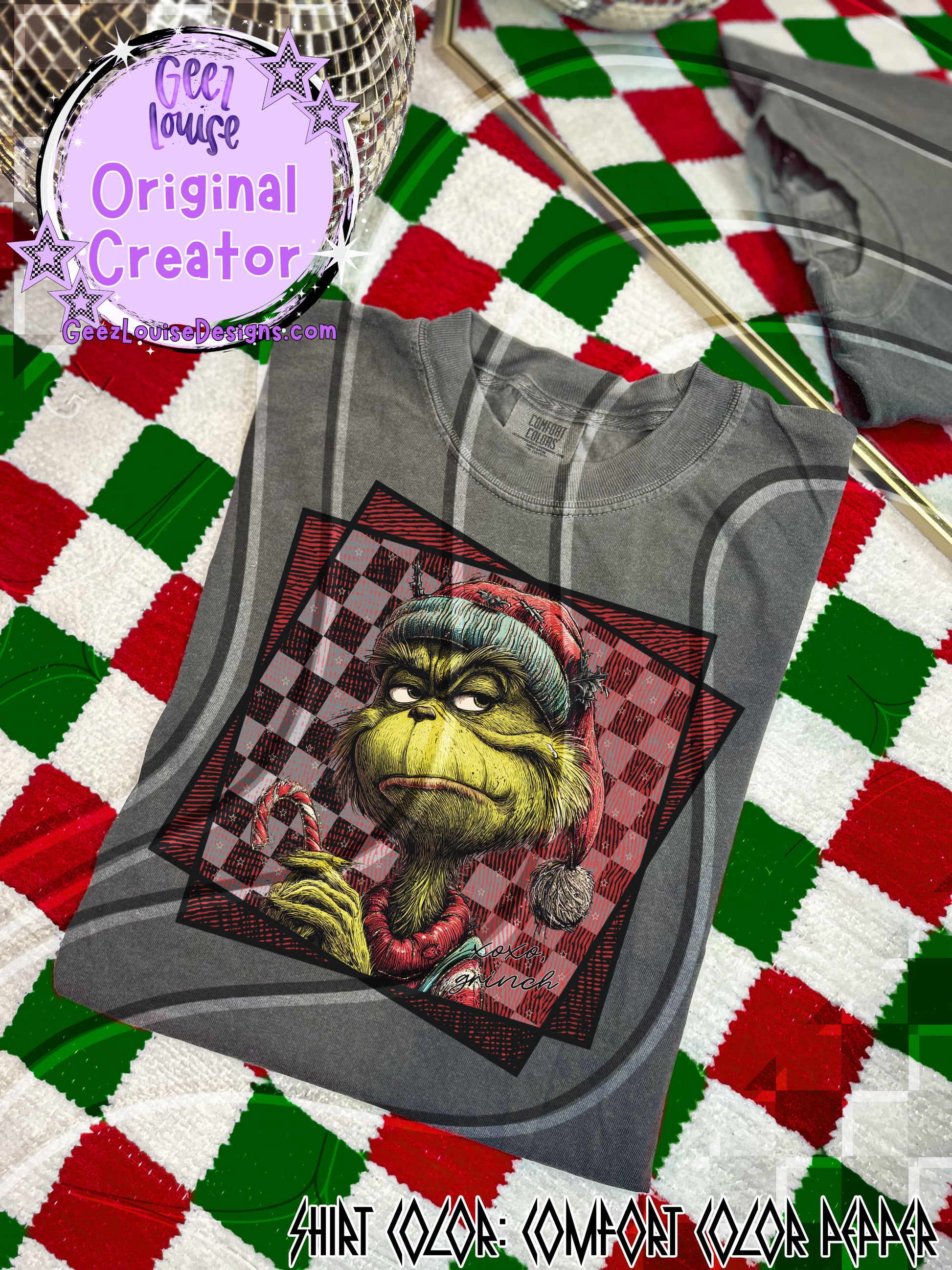 Add some cheeky holiday attitude to your projects with the XOXO GMAN digital design! Featuring the iconic green mischief-maker in a cozy winter hat with a candy cane in hand, set against a layered red plaid background, this artwork is perfect for adding sass and humor to your seasonal creations.
